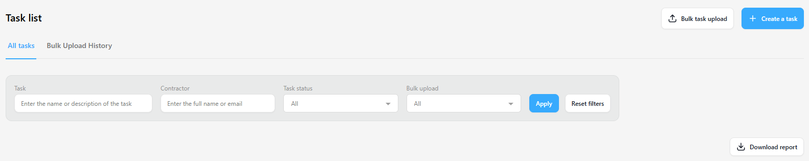- Click Bulk task upload.