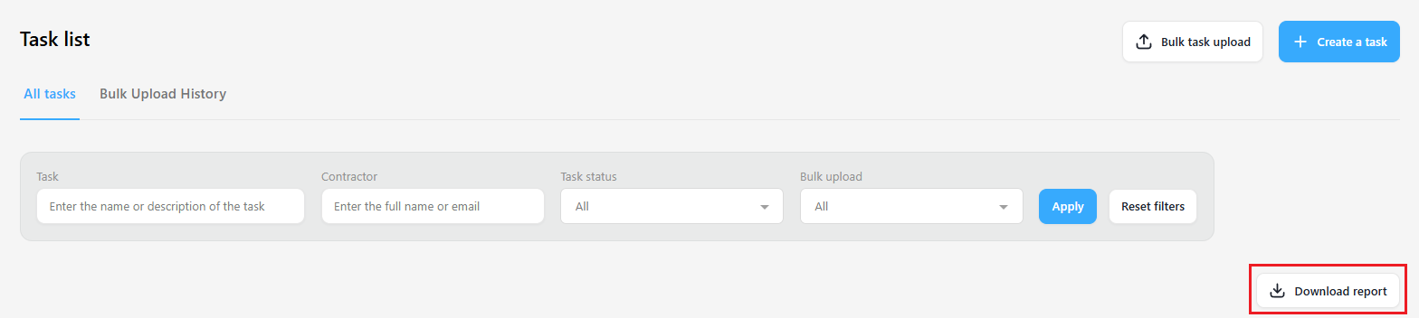 Now, all customers can independently download task reports. A "Download report" button is now available in the "Tasks" section.
